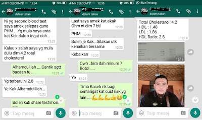 "Kolesterol dari 4.2 turun ke 2.8 selepas amalkan Pati HerbaMadu. Ini Blood test saya" - Nizam, Penang